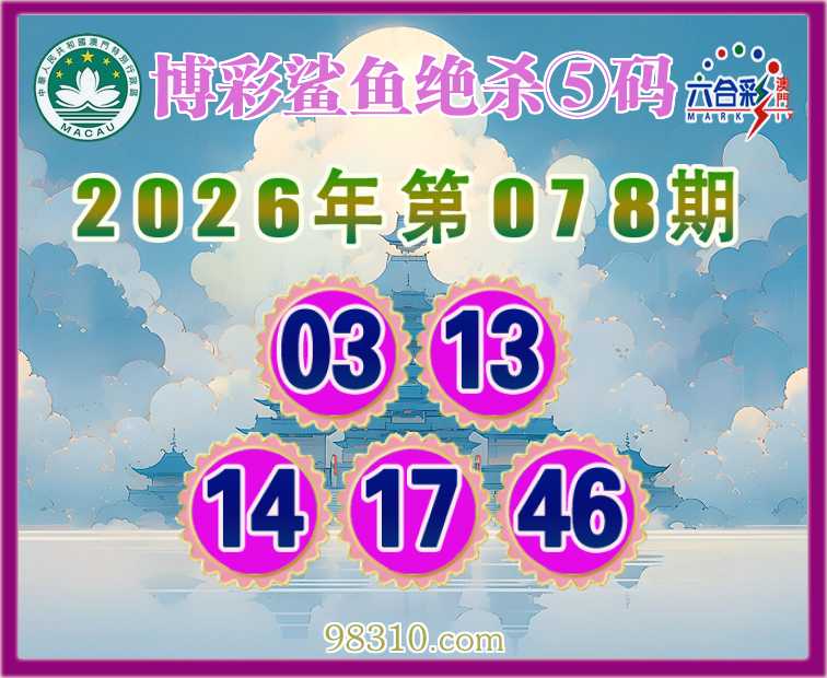 078期:《博彩鲨鱼》 绝杀⑤码【03.13.14.17.46】开:鸡46