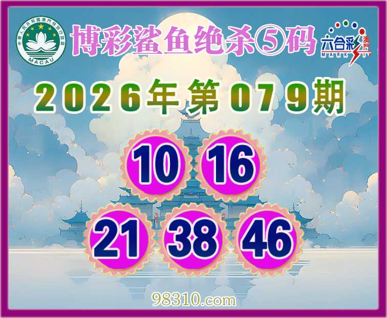 079期:《博彩鲨鱼》 绝杀⑤码【10.16.21.38.46】开:00准