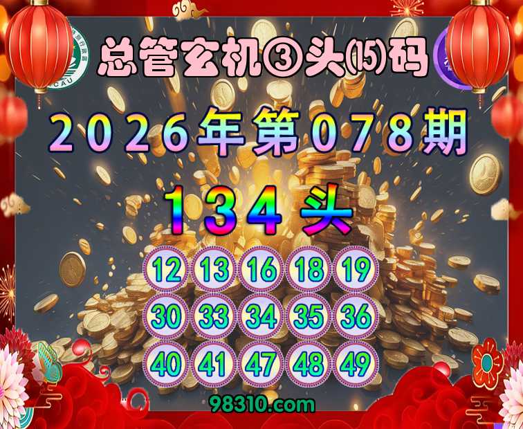 078期:《总管玄机》 ③头⒂码【134头】开:46准验证上榜