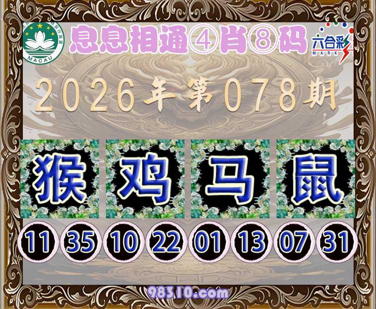 078期:『息息相通』 ④肖⑧码【猴马鼠】开:鸡46准验证上榜